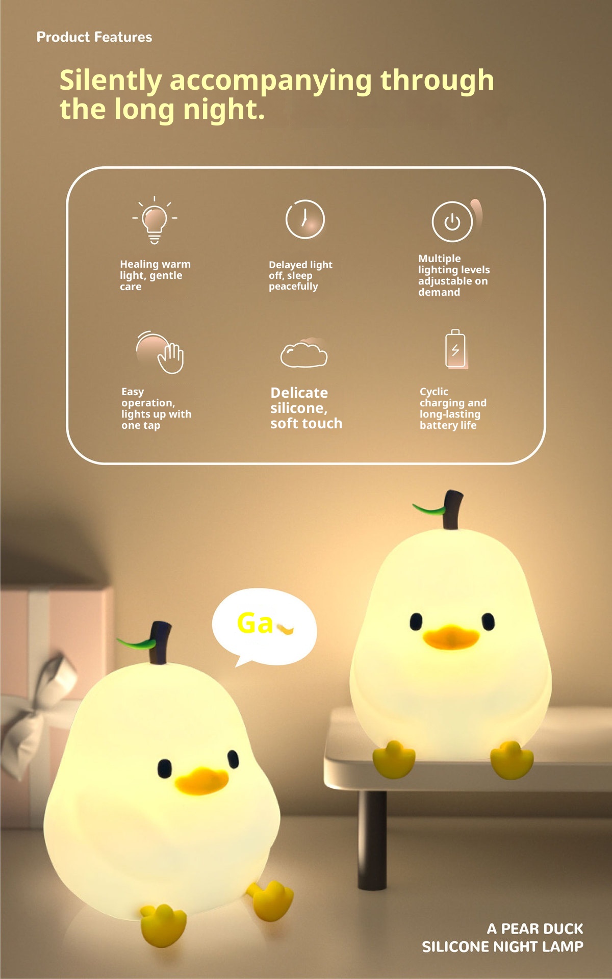Add a soft, cozy glow to any room with this cute pear-shaped silicone night light. Designed in a playful cartoon style, it’s perfect for bedside tables, desks, nurseries, or as a small gift. With a built-in rechargeable battery, it’s easy to place anywhere without messy cords.
